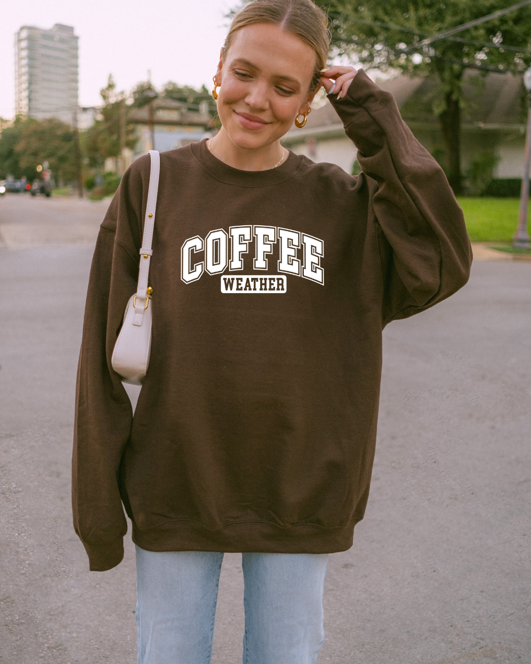 Our Coffee Weather crewneck is made for those chillier days when all you want is a warm latte and a comfy fit. Featuring a bold varsity style font on an ultra soft ivory fleece, it's the kind of staple you’ll reach for again and again.