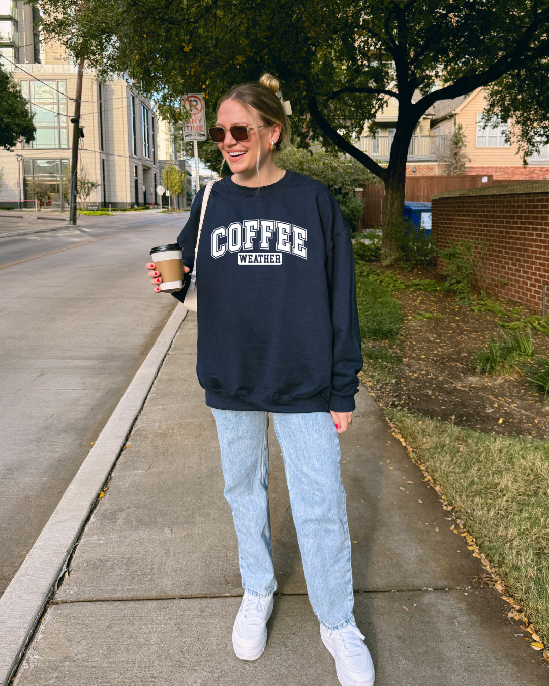 Fall days + cozy drinks = the perfect excuse to live in this sweatshirt 🍂☕
