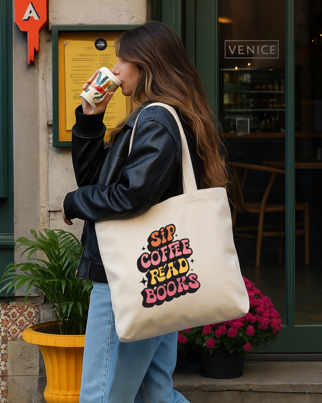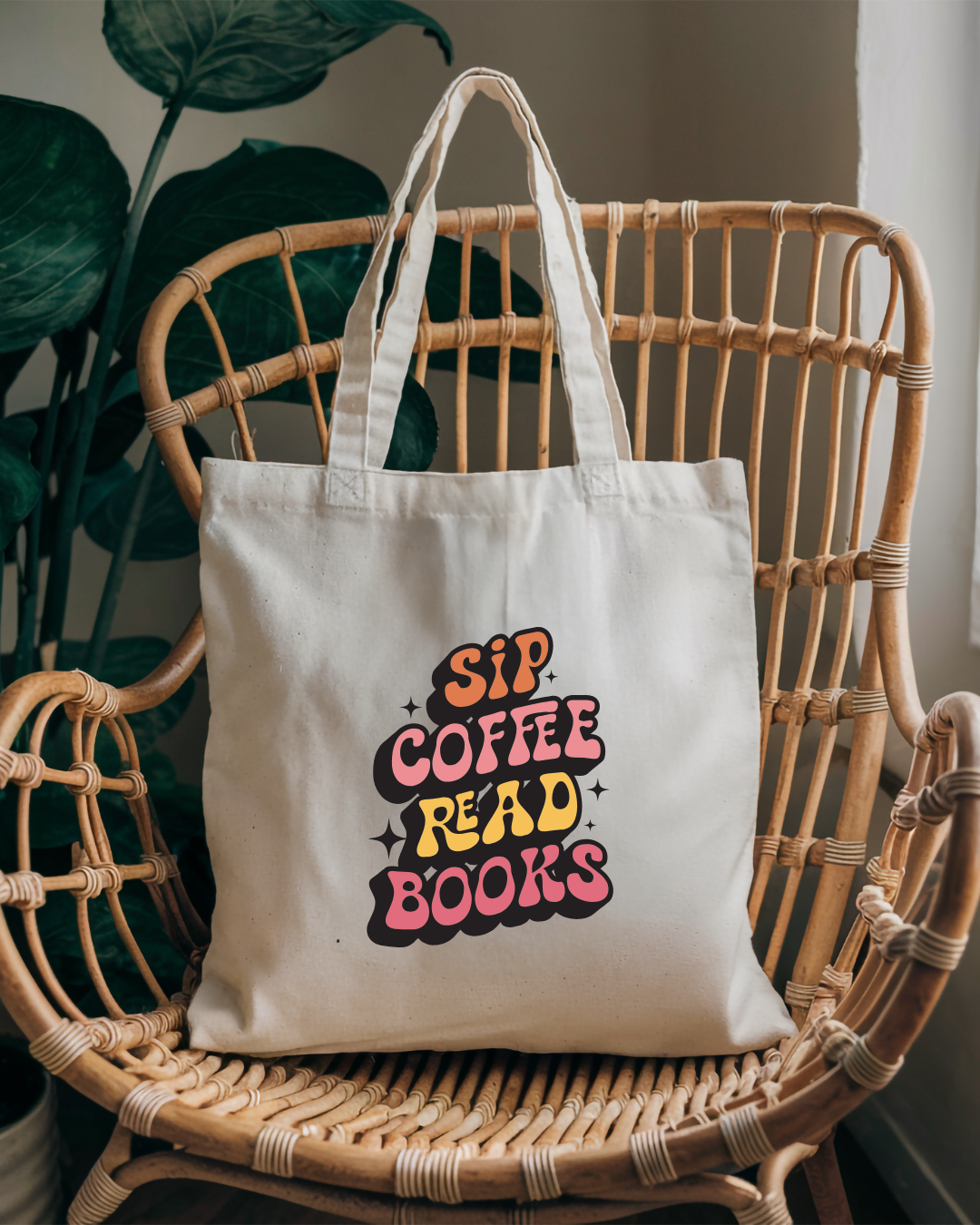 Calling all book lovers and caffeine queens! This retro-inspired tote is your new daily look. With groovy lettering and cozy colors, it’s made for mornings at the café, afternoons at the library, or anytime you want to carry your favorite mood with you.